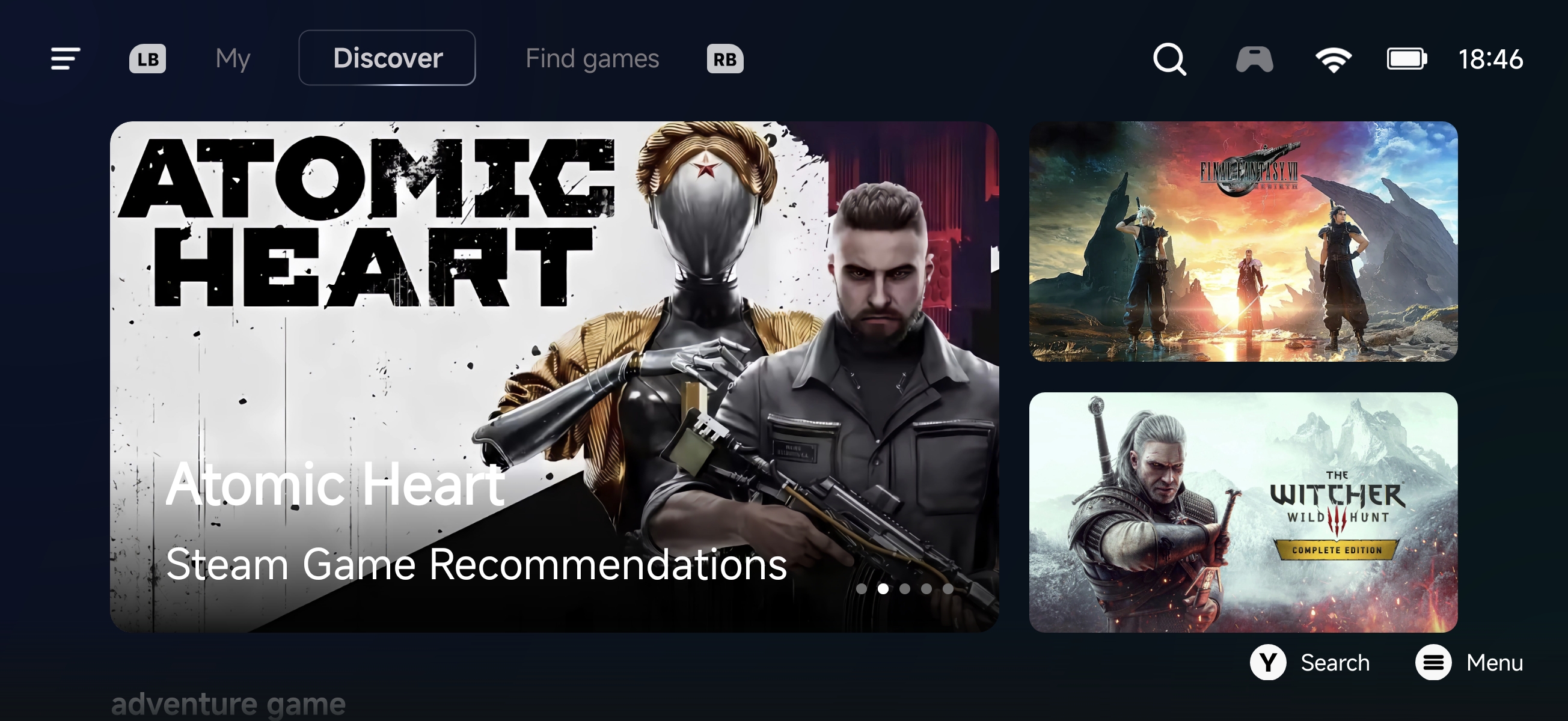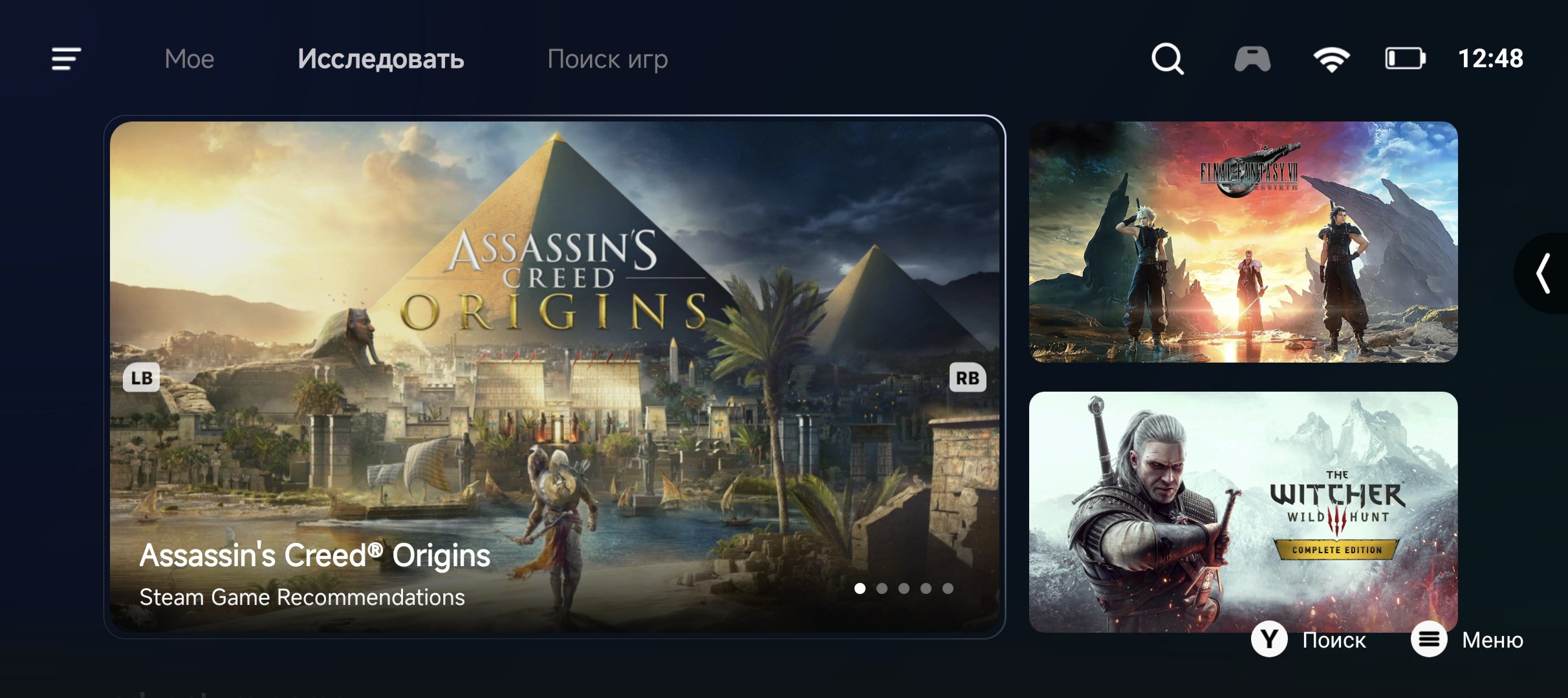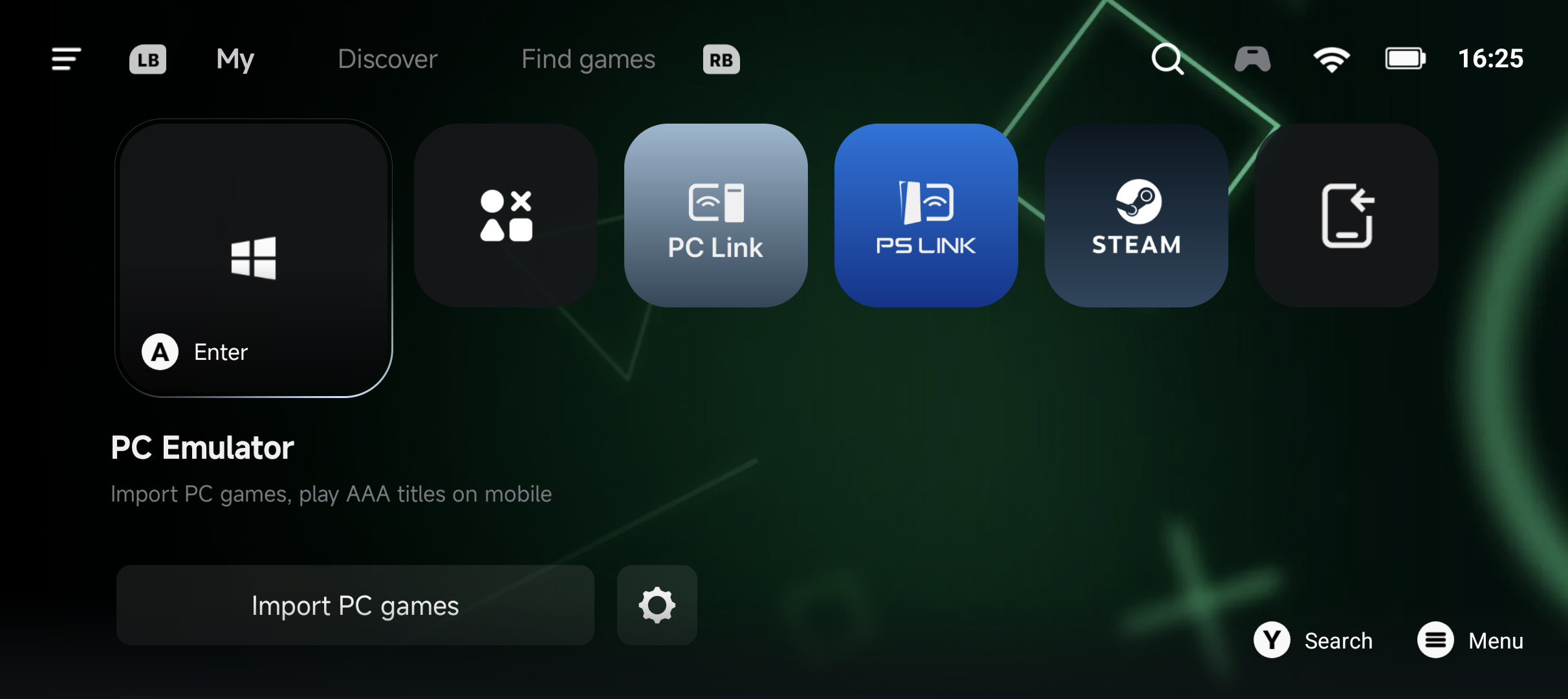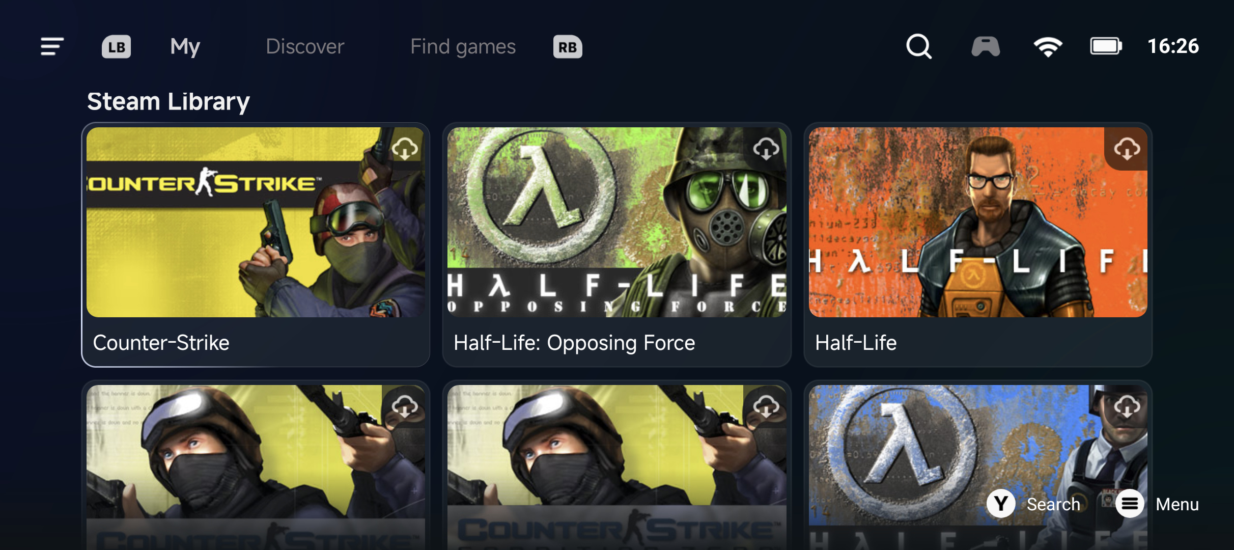 Зарегистрировавшись, вы попадаете в основное меню эмулятора. Сюда можно импортировать игры напрямую с вашего компьютера, через USB-С, либо скачать из библиотеки Steam, но для этого придётся ввести логин и пароль уже от «Стима».