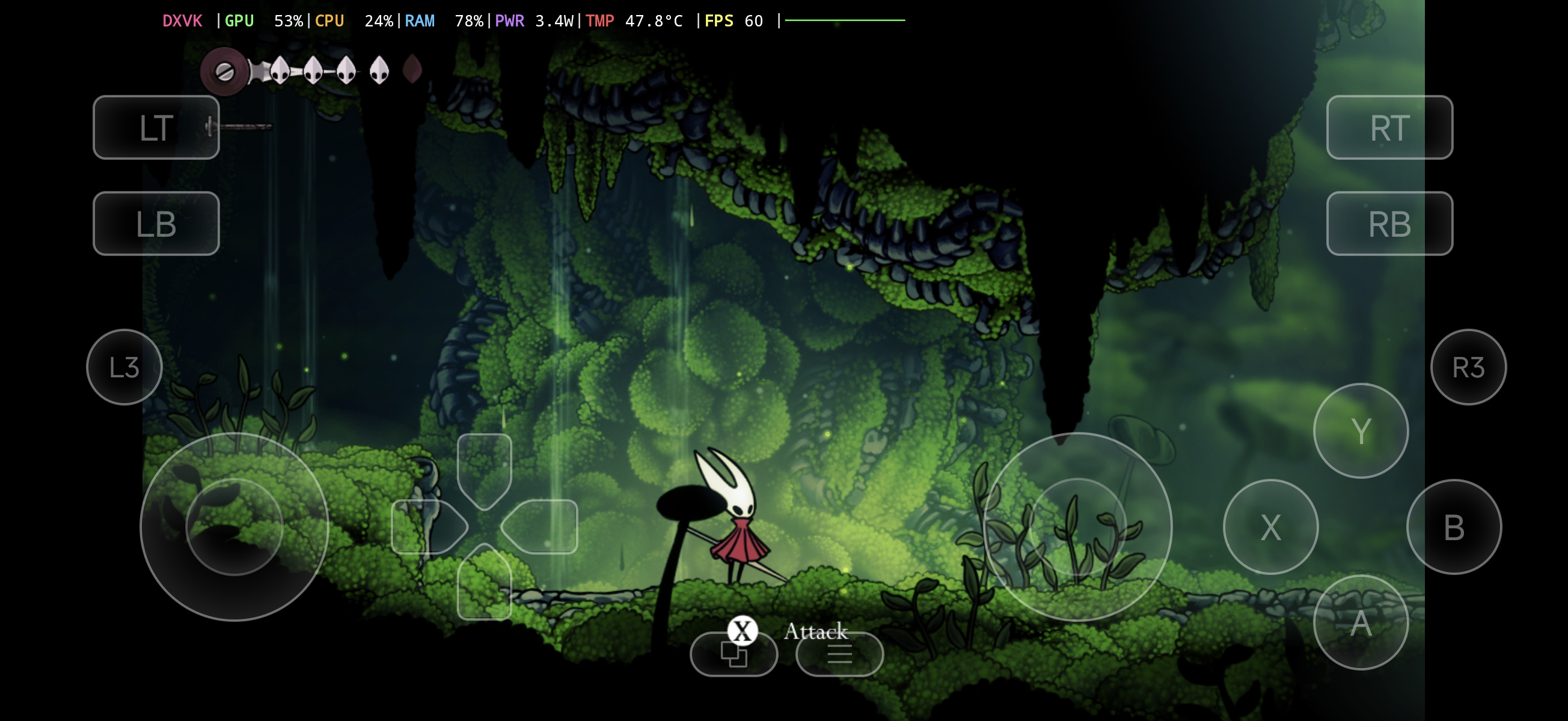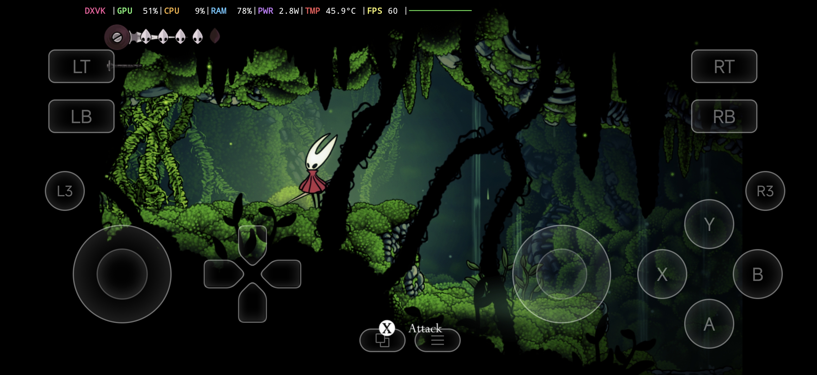 Инди-игры с 2D-графикой работают отлично: Hollow Knight: Silksong, Dead Cells, Peglin и Cuphead быстро загружаются, шустро летают и почти не нагружают смартфоны в 720p с локом на 60 FPS.