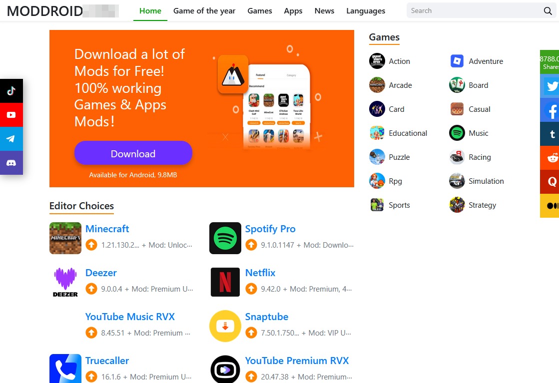Помимо этого, заражённые apk распространяются в подборках приложений в мессенджерах и на серверах в Discord, а также в неофициальных модах на Spotify и на сайтах с бесплатными apk: apkmody и modroid. У последнего в подборке «Выбор редактора» трояны содержали аж 16 из 20 приложений!