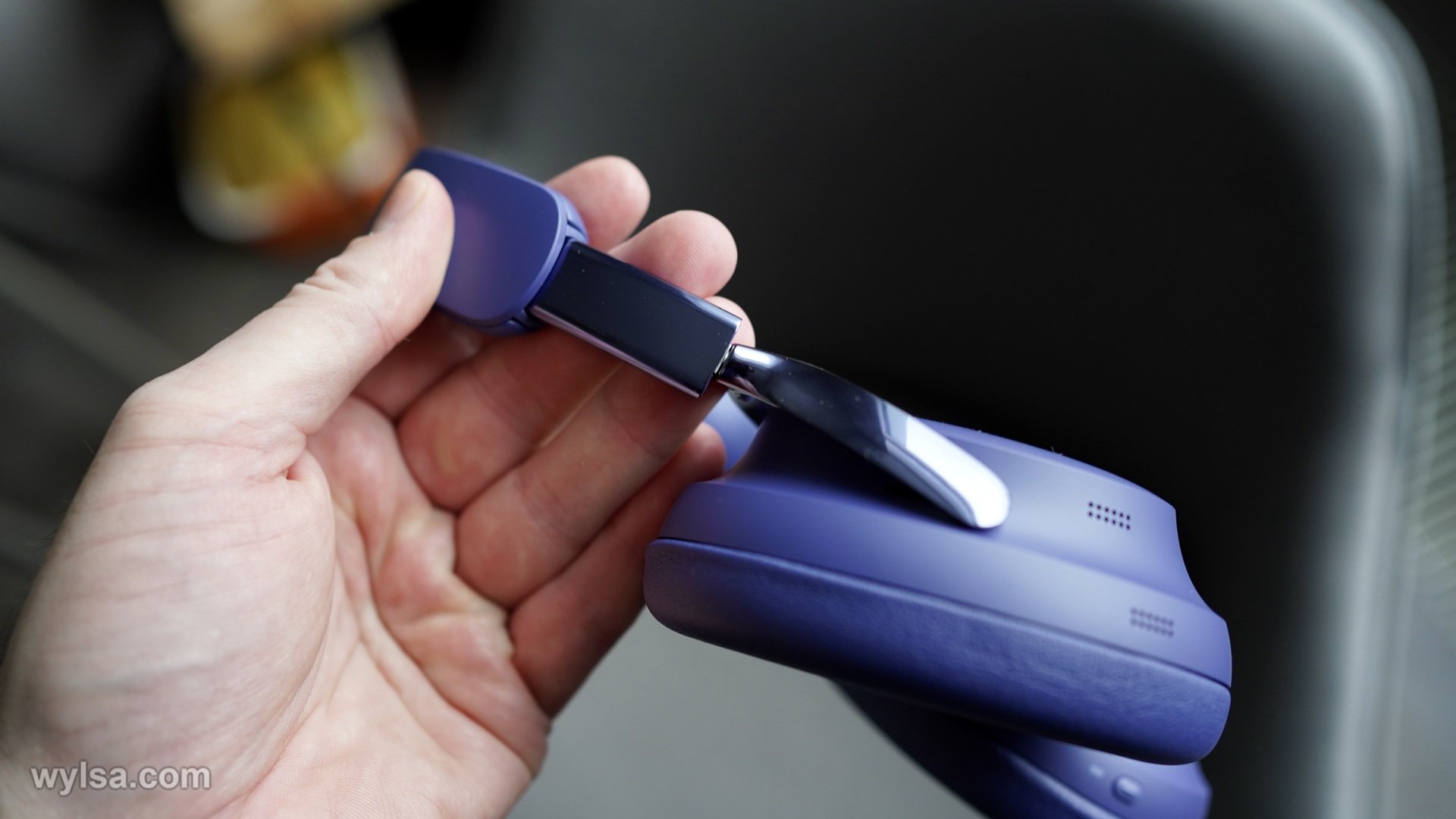 Модель на старте представлена в нескольких интересных цветах, мне очень нравятся наушники в обзоре. Это матовый тёмно-синий с глянцевыми элементами, смотрится богато, цвет меняется в зависимости от освещения. Ещё есть белые QC Ultra, чёрные, серые, бежевые и чёрные с золотыми деталями.