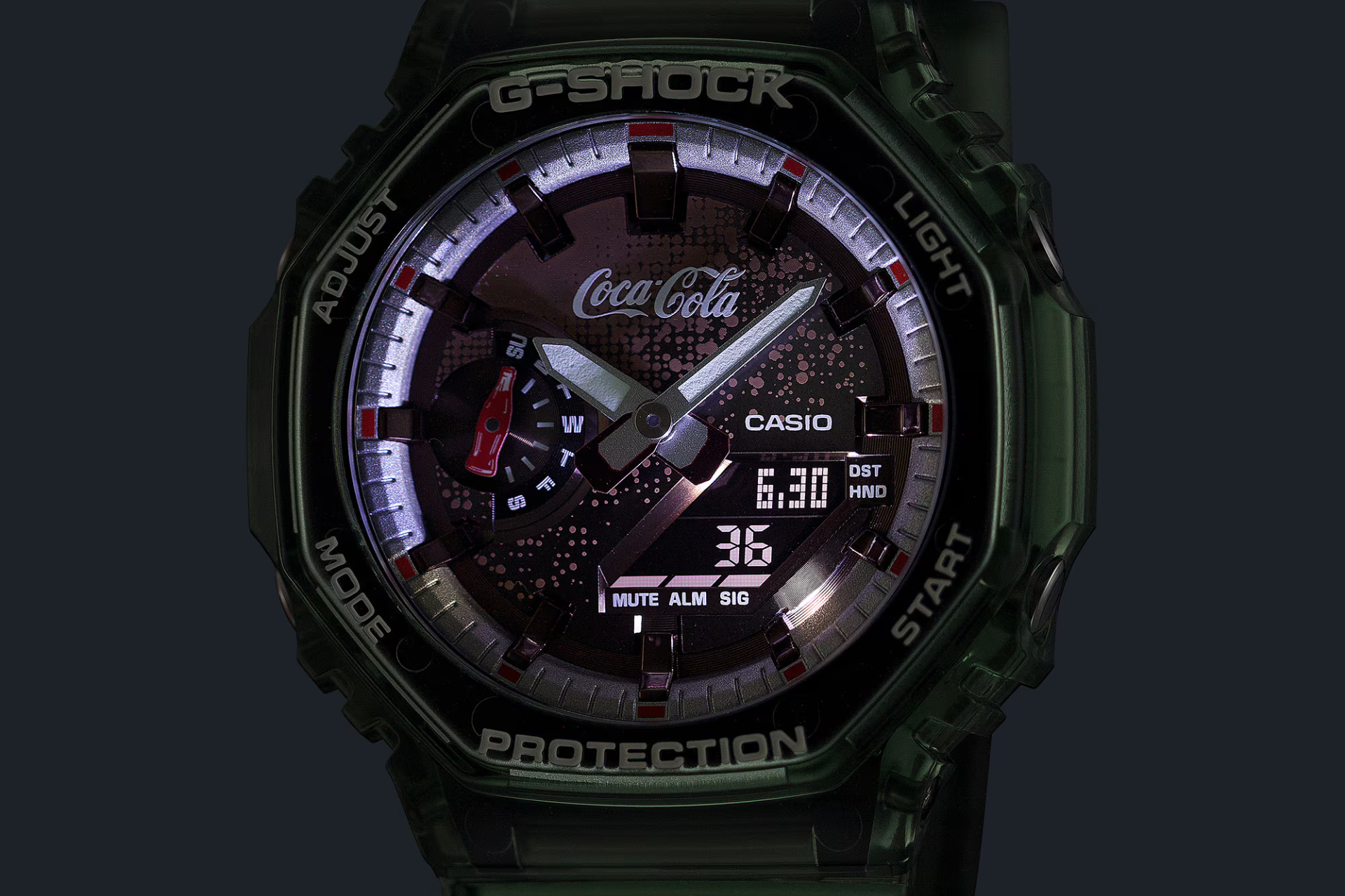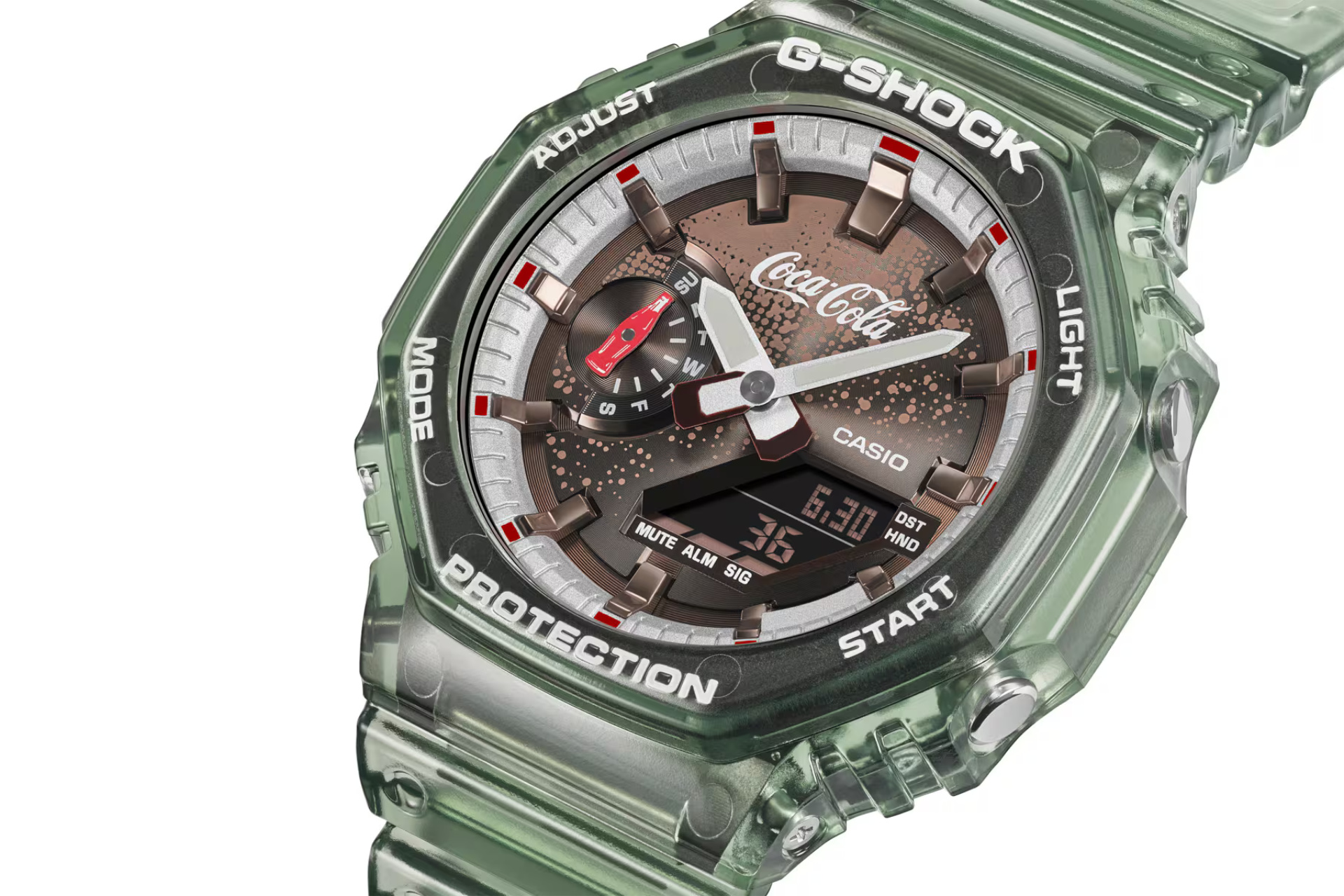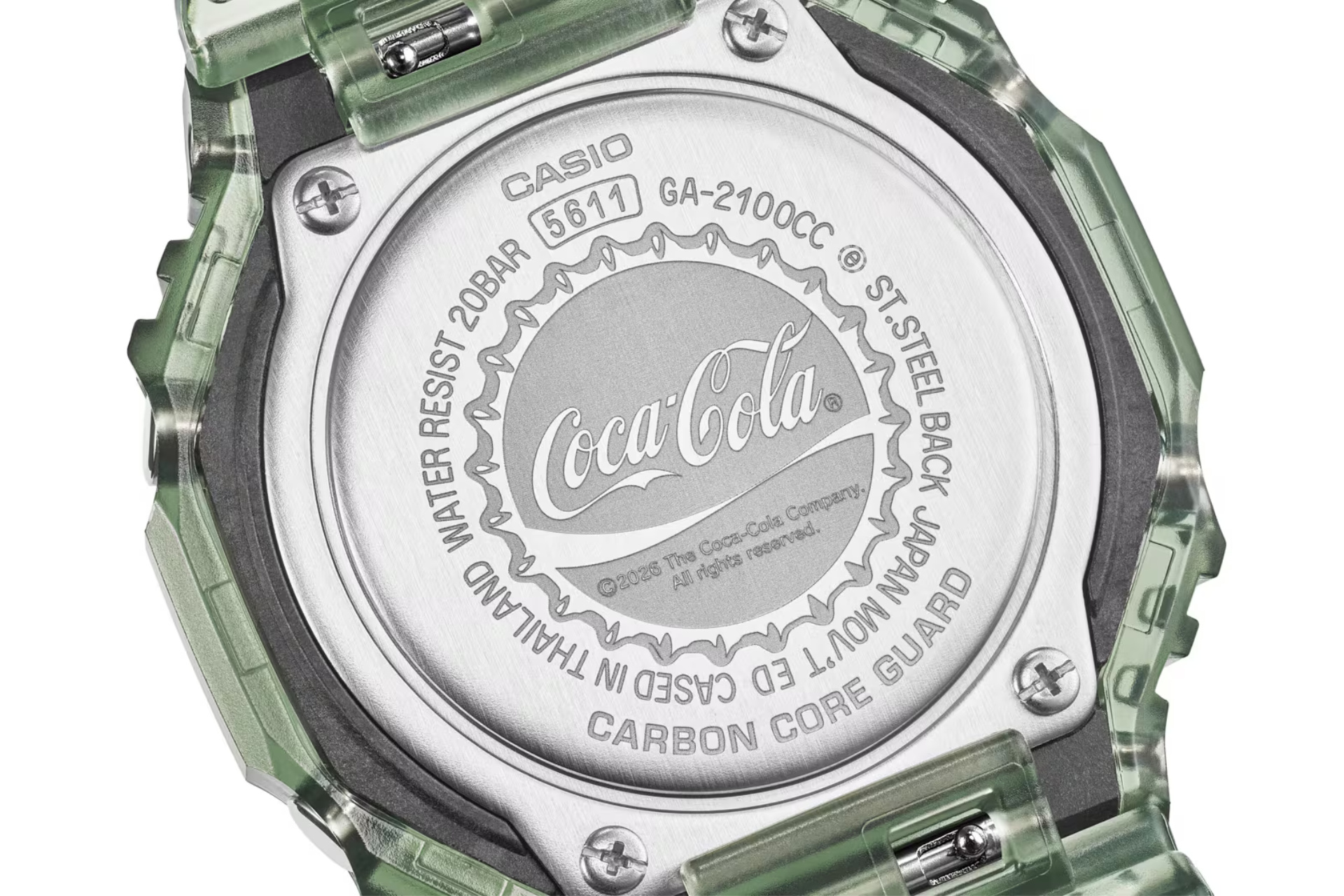 Компания стилизовала часы под зеленоватую стеклянную бутылку «Колы» столетней давности. Лимитка с лаконичным названием GA-2100CC-3AJR поступит в продажу в мае, после юбилея одного из старейших производителей прохладительных напитков.