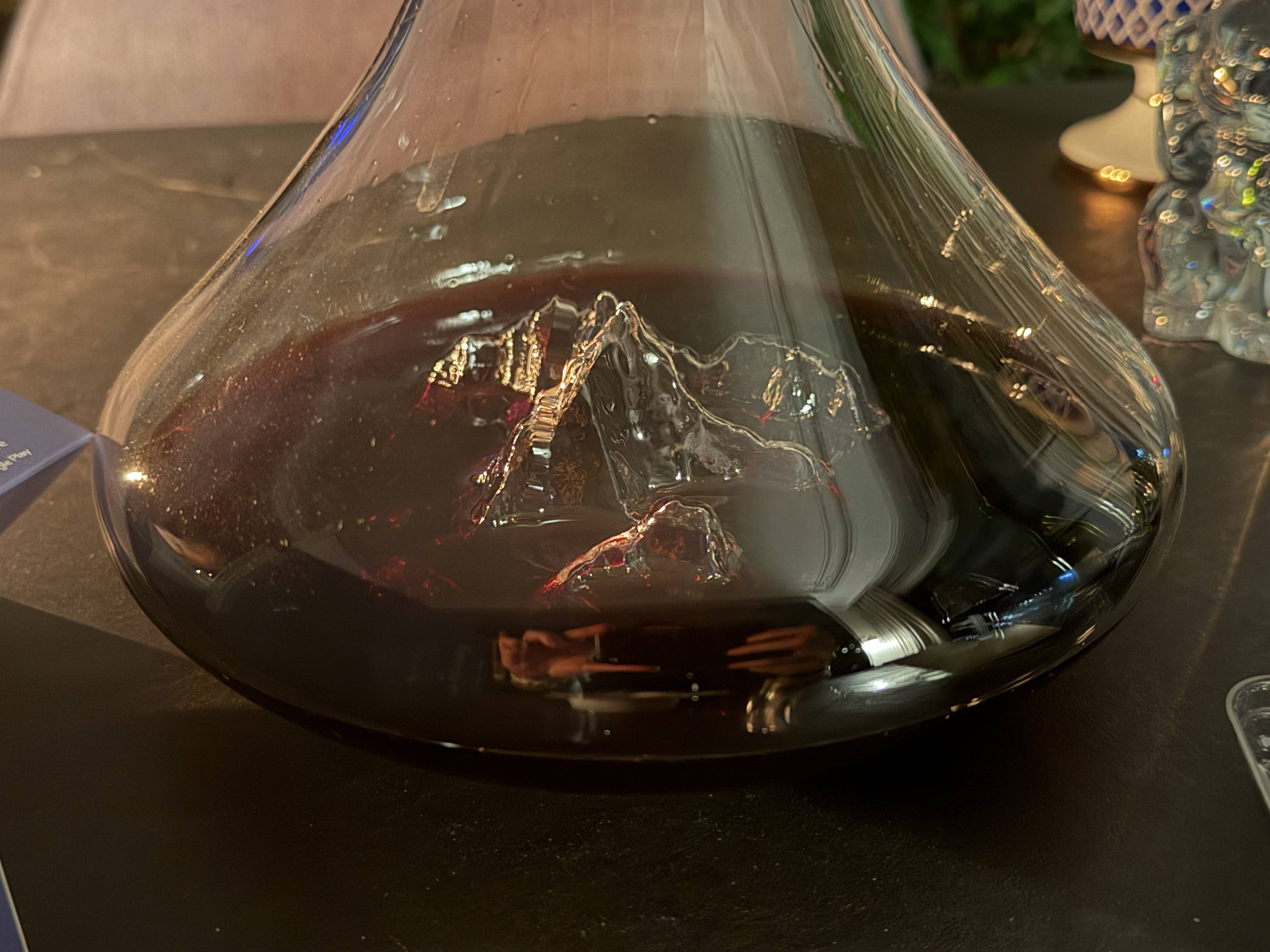 Остаётся только напомнить о вреде алкоголя, ну, думаю, вы и так в курсе. Давайте покажу вам декантер без вина!