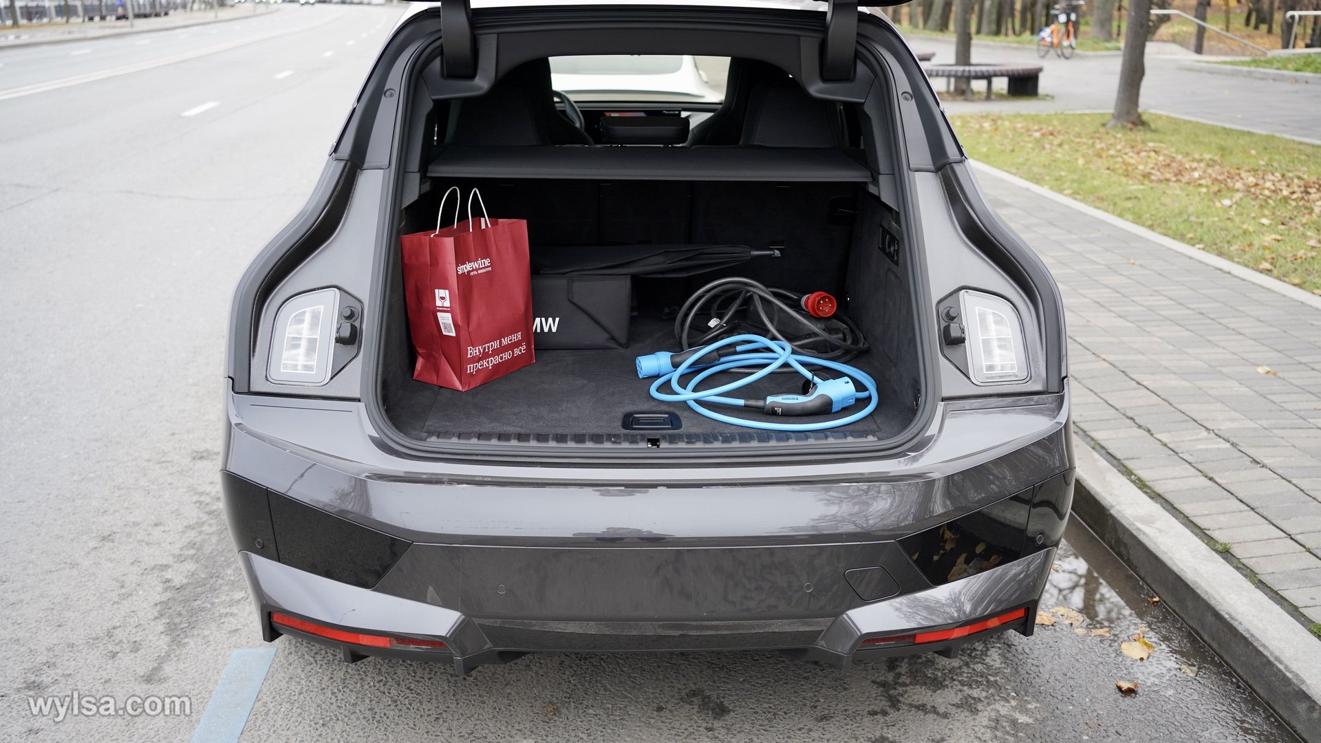Да, и я вот упоминал размеры, но что это значит в реальности? В реальности в iX могут комфортно сесть четыре взрослых человека с какими-то вещами и махнуть, скажем, на дачу не особо далеко от города. Багажник может и не как в X7, но сюда легко запихнуть большие чемоданы и какой-то негабаритный груз, сиденья складываются.