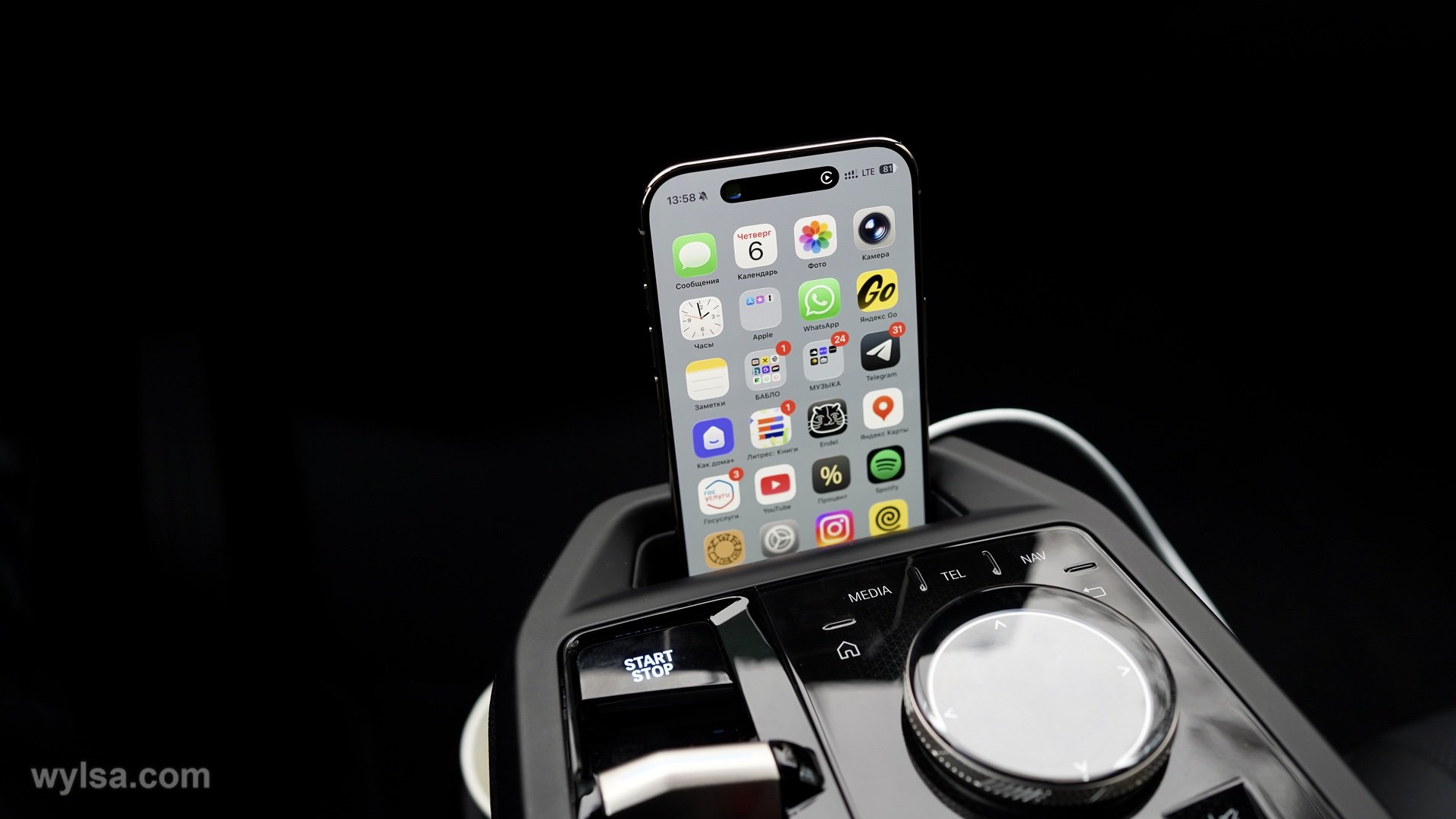 Вы скажете, ну так есть CarPlay и отсек для беспроводной зарядки внизу, зачем огород городить? CarPlay помогает, но далеко не во всём, беспроводная зарядка медленная. Просто делюсь с вами болью!