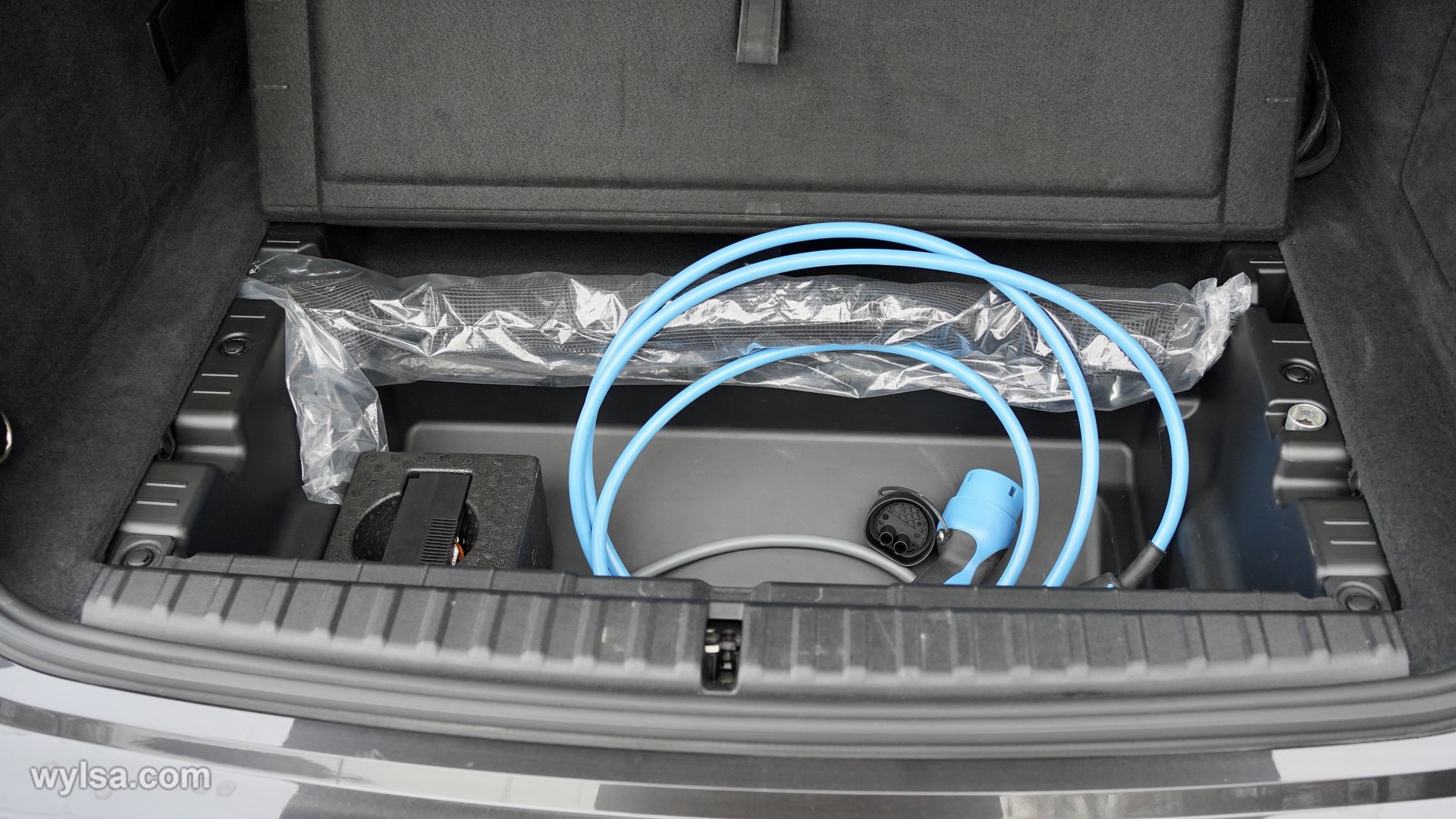 Про зарядки. В комплекте есть простая зарядка BMW с обычной вилкой, она забирает 2 кВт в час, батарея в сороковой версии примерно на 77 кВт, вот и считайте. С такой зарядкой всё происходит очень славно, очень долго, очень надёжно. Электромобили такое любят больше всего (а больше всего не любят разного рода быстрые зарядки). Также была куплена зарядка от Audi e-tron с хвостом для красных розеток, вот с её помощью получаем уже 11 кВт. Приехал на парковку, подключился, вечером забрал машину с полным зарядом. Замечу, обычно я стараюсь придерживаться тех самых восьмидесяти процентов, но, если надо куда-то ехать, можно залить и полный бак. Ну и ещё была заказана зарядная станция BMW, но про неё я ещё расскажу отдельно.