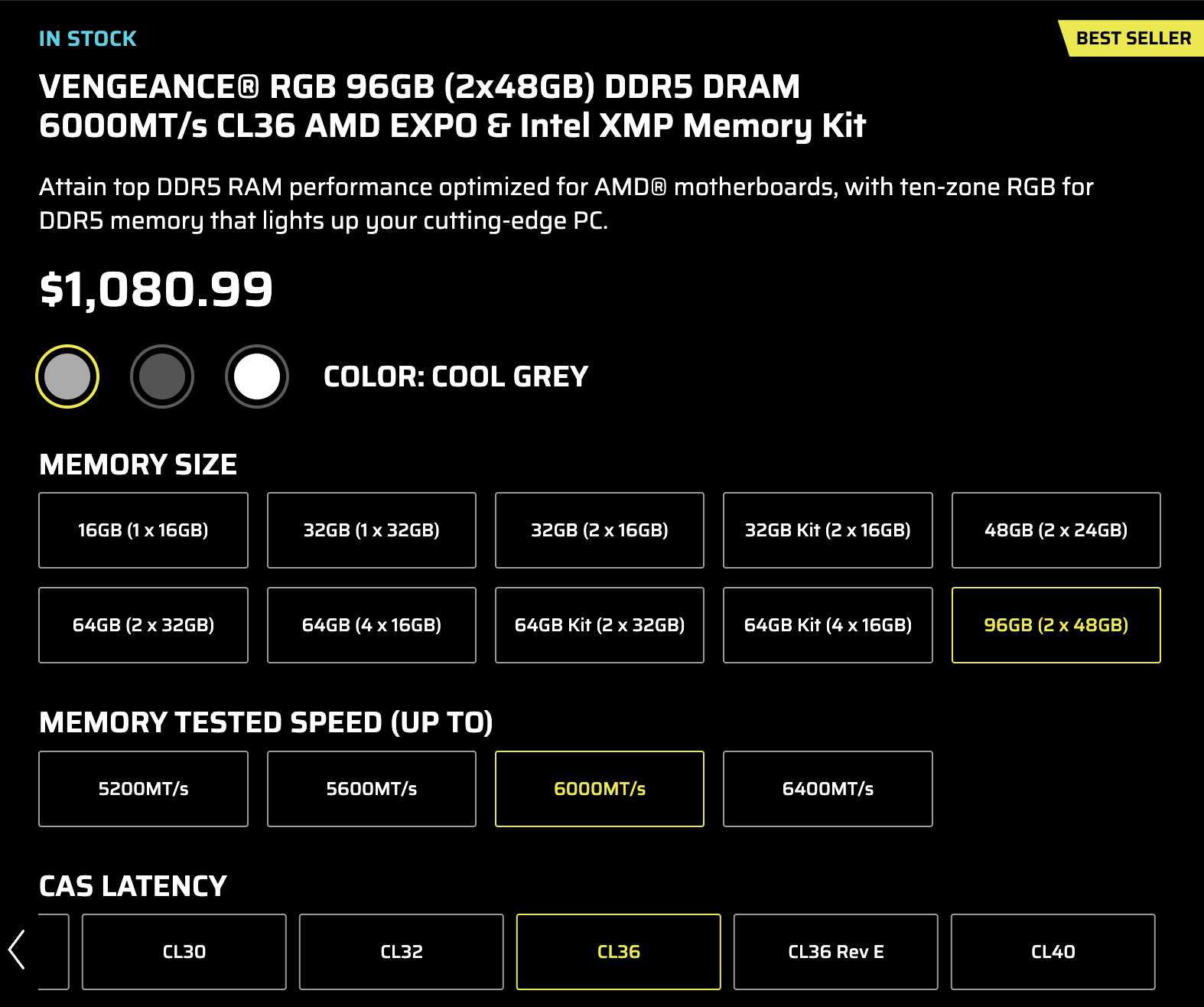 Теперь же сайт CORSAIR с аналогичным набором выглядит так: