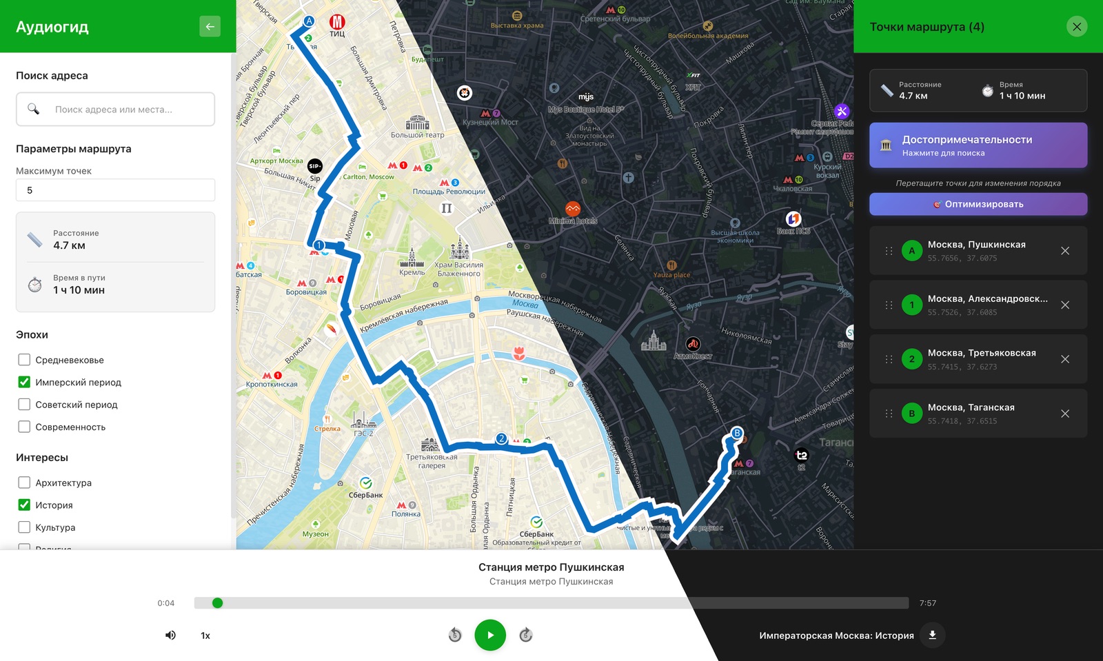 Настольный интерфейс аудиогида «2ГИД», сделанный командой dev1dentbl. Источник: «ДубльГИС»