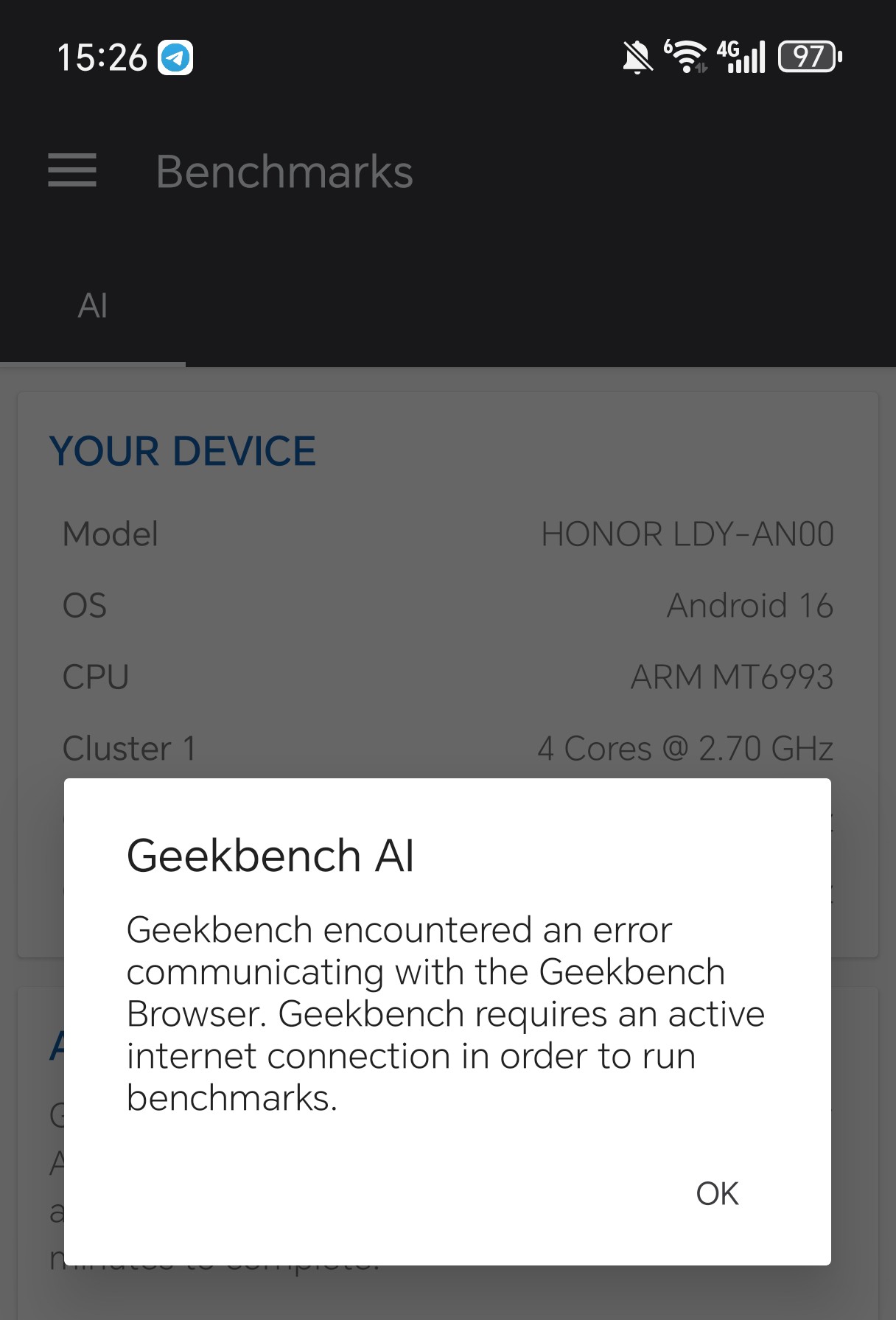 - Geekbench AI спустя полчаса теста требовал подключение к интернету, которое я у него не отнимал: