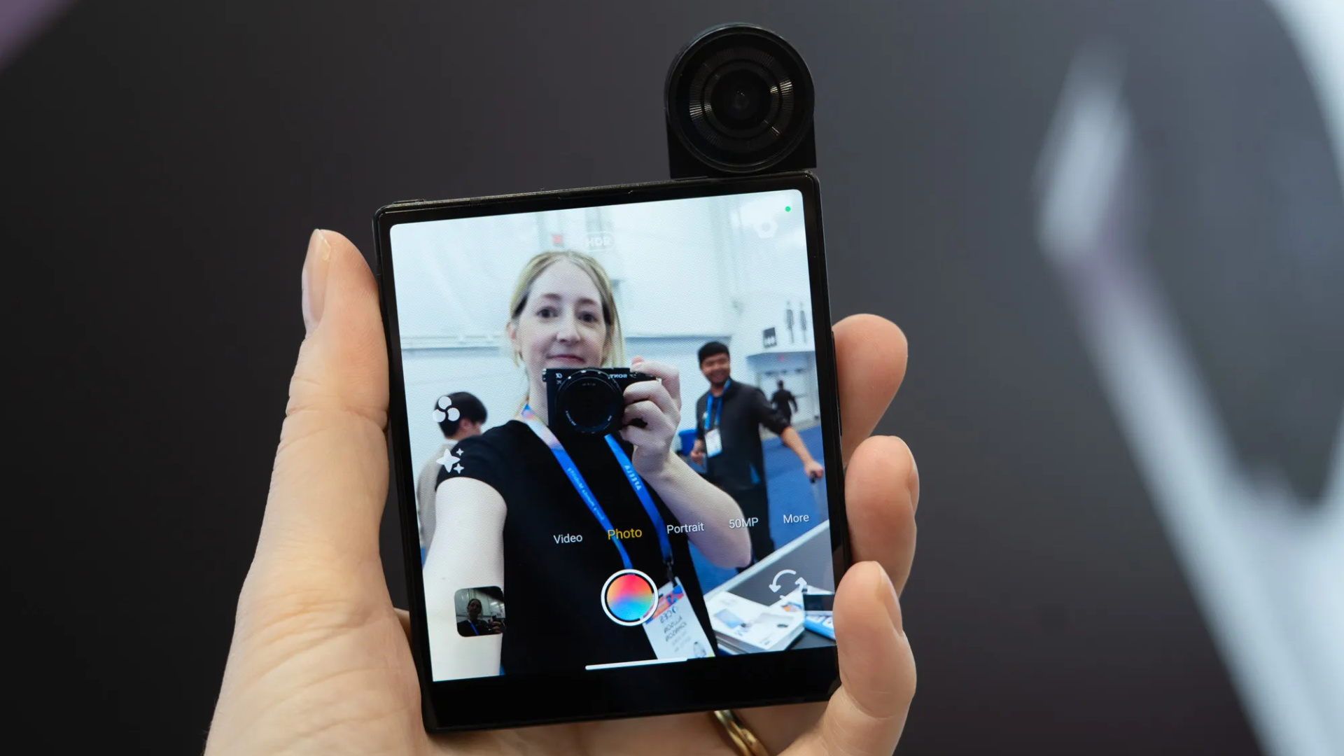 Смартфон получил одну-единственную матрицу на 50 Мп размером 1/1,56 видиконовских дюйма и диафрагмой f/1.8. Она одновременно служит как основная камера и как фронталка. Эллисон Джонсон из The Verge удалось пощупать устройство живьём!
