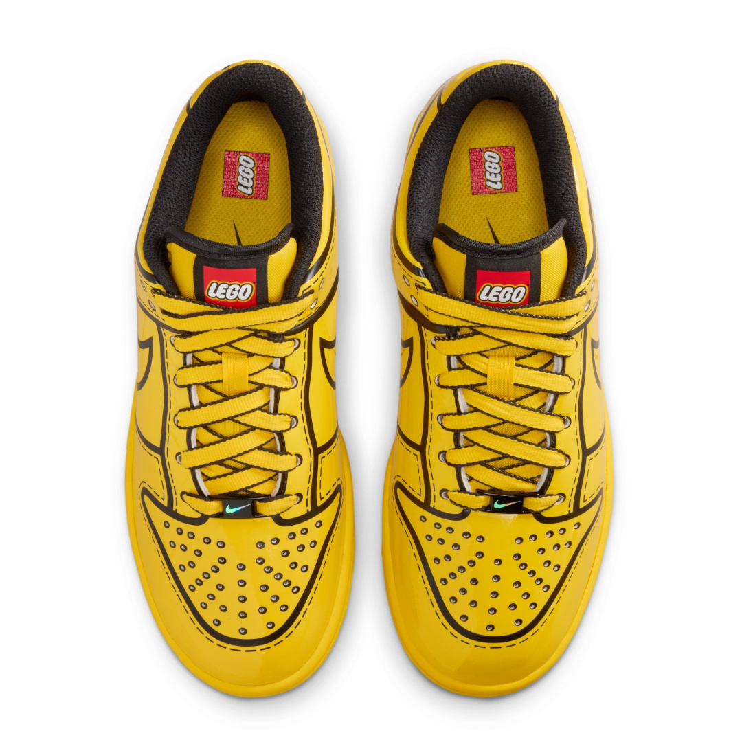 Компания перевыпустит модель Dunk Low в полностью жёлтом цвете с мультяшной чёрной обводочкой. Подошва и стельки тоже жёлтые — прям как ноги LEGO-человечков!