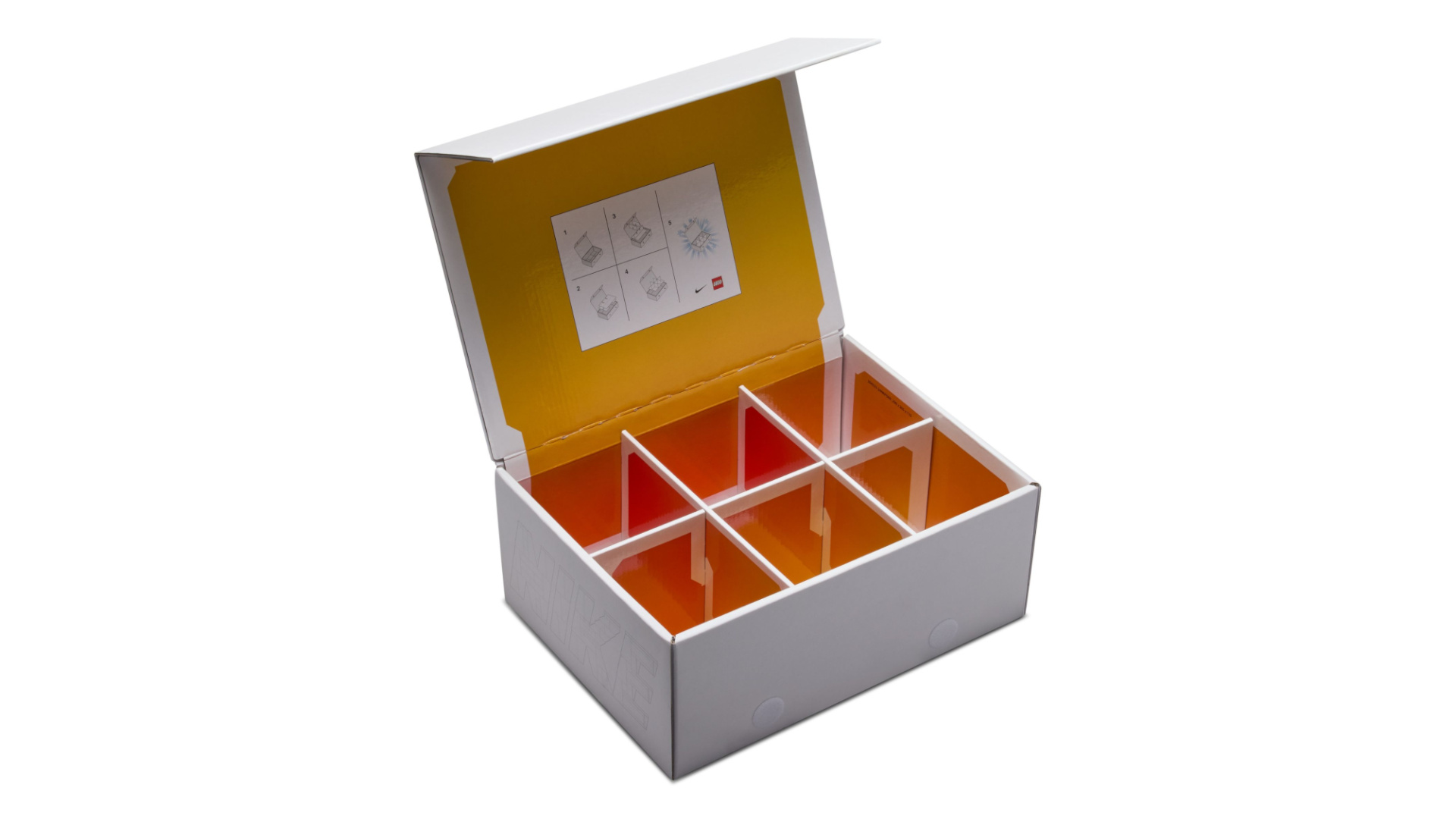 Для фанатов конструктора приготовлен отдельный сюрприз: коробка от обуви идёт со складным органайзером для удобного хранения кубиков.