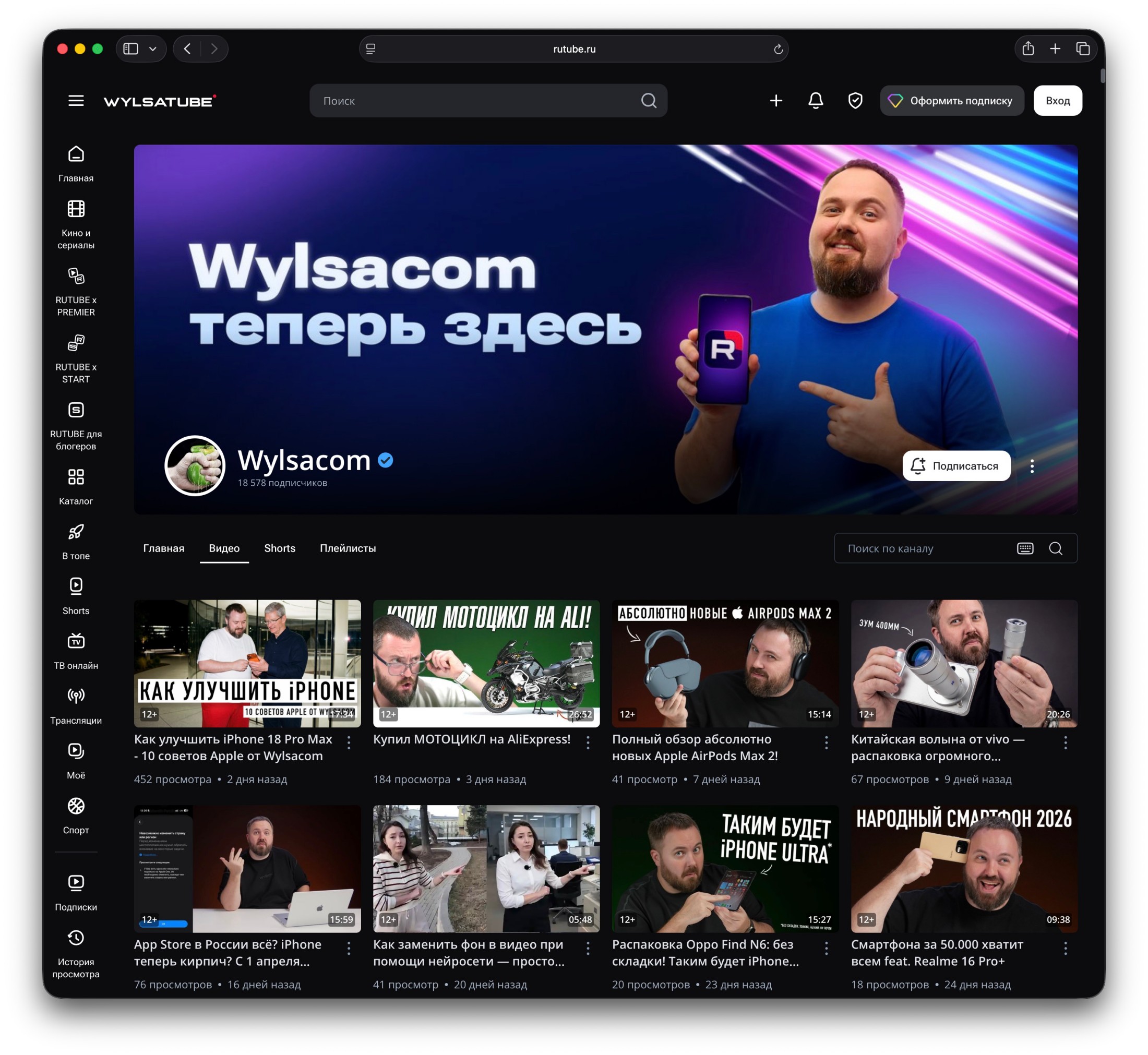Поэтому с сегодняшнего дня вы можете смотреть ролики Wylsacom, где вам удобно. В том числе и на RUTUBE.