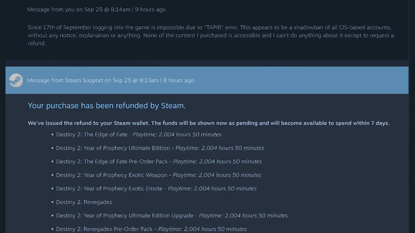 Steam возвращает деньги игрокам, наигравшим в Destiny 2 больше 2000 часов