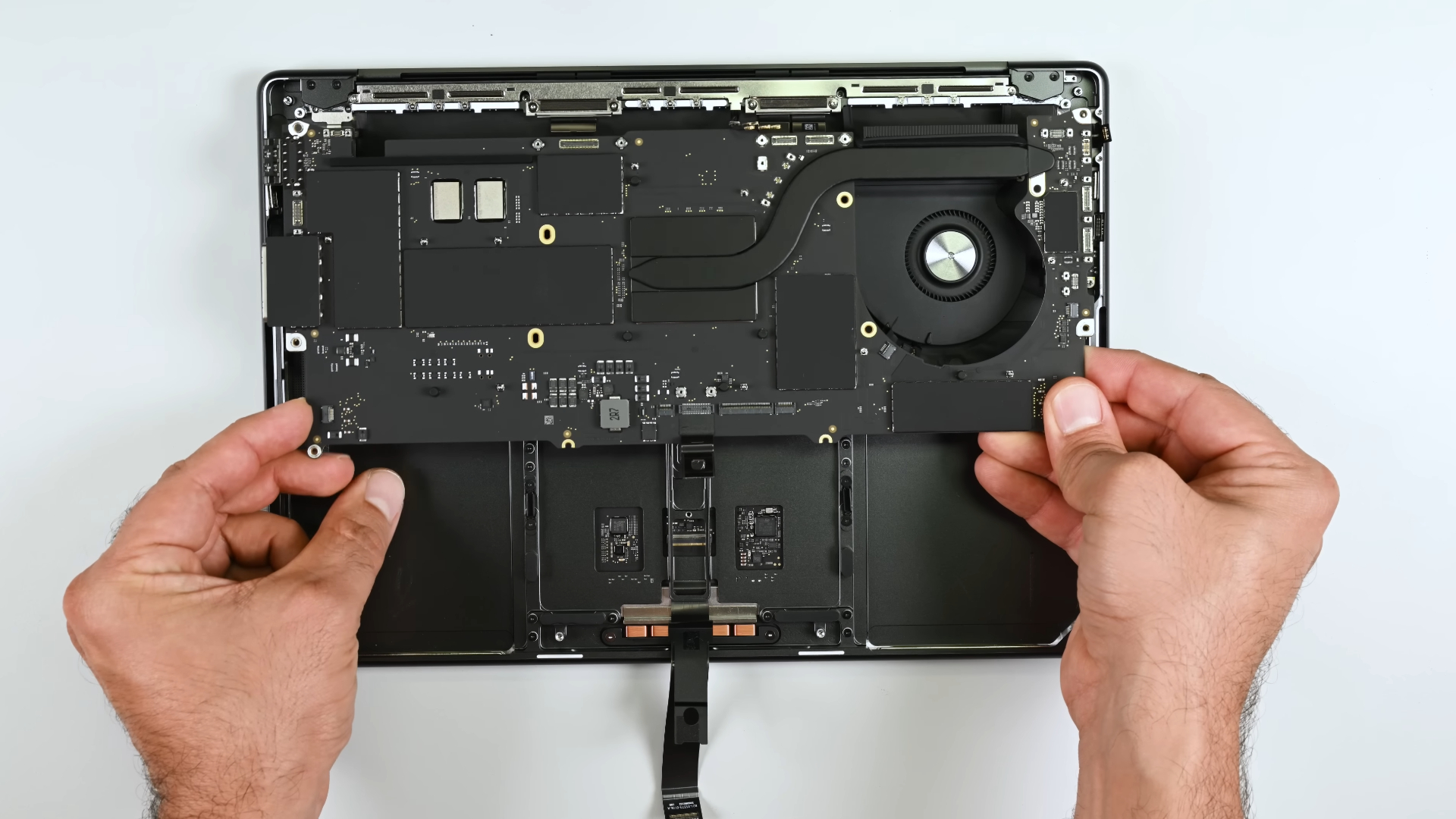 Для замены вентилятора, экрана и даже USB-разъёмов придётся снимать материнскую плату — самый дорогой компонент макбука после дисплея.